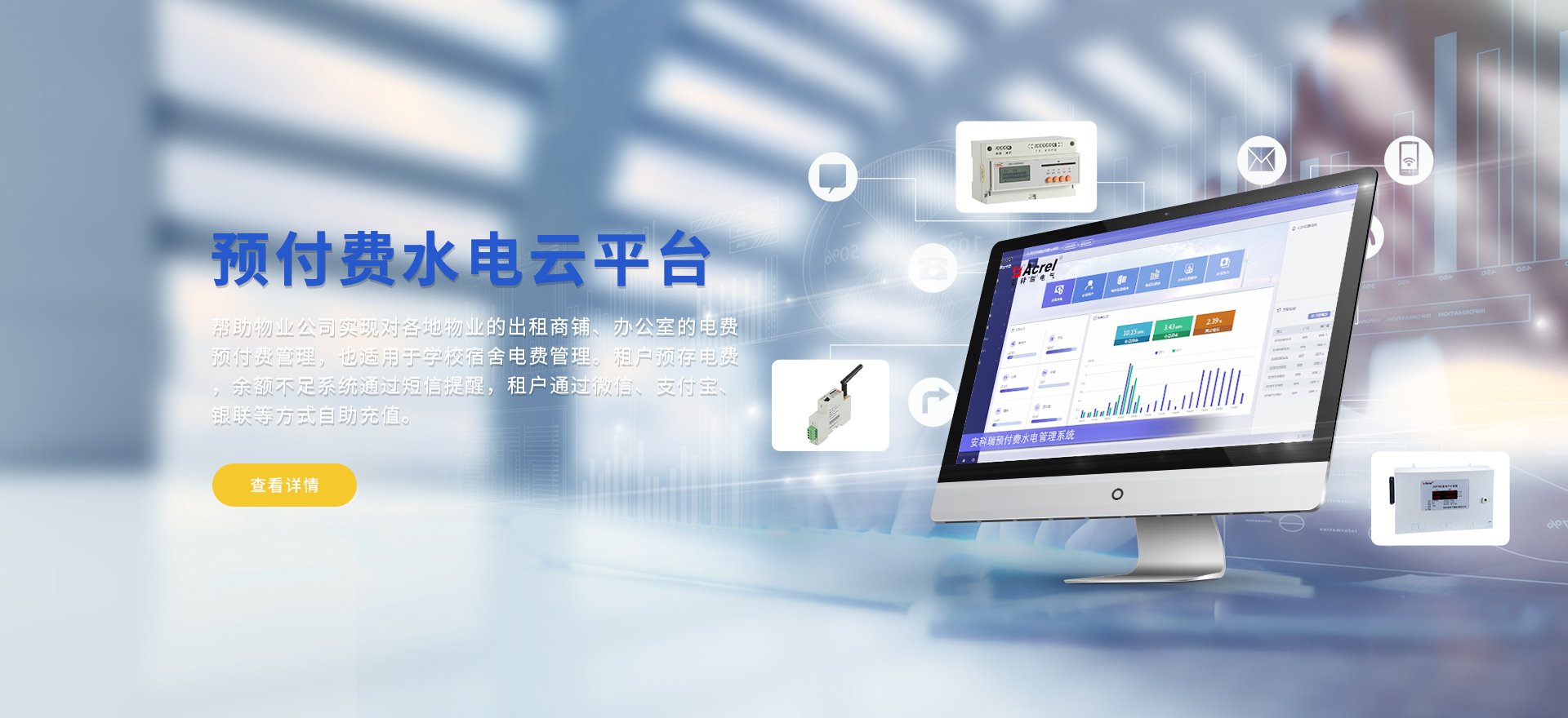 安科瑞提供的解決方案包括Acrel-EIoT能源物聯(lián)網(wǎng)云平臺變電所運維云平臺安全用電管理云平臺環(huán)保用電監(jiān)管云平臺智慧消防云平臺能源管理云平臺、工業(yè)企業(yè)能源管控平臺、遠程預(yù)付費云平臺餐飲油煙監(jiān)管云平臺電動汽車/電瓶車充電樁收費管理云平臺、電力監(jiān)控/無線測溫系統(tǒng)、電能質(zhì)量治理系統(tǒng)、電氣火災(zāi)監(jiān)控系統(tǒng)消防設(shè)備電源監(jiān)控系統(tǒng)防火門監(jiān)控系統(tǒng)應(yīng)急照明和疏散指示系統(tǒng)、智能照明控制系統(tǒng)、醫(yī)用隔離電源絕緣監(jiān)測系統(tǒng)等,幫助用戶實現(xiàn)能源智能化、可視化、精細化管理,提高用能效率和用能安全,為企業(yè)節(jié)能降耗和實現(xiàn)能源數(shù)字化建設(shè)提供數(shù)據(jù)服務(wù)。